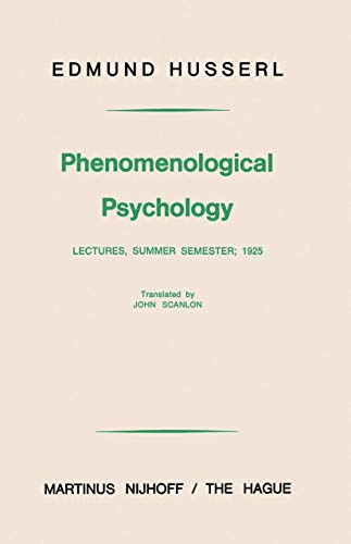 Translation of Phänomenologische Psychologie from Husserliana ix published in The Hague, 1962.