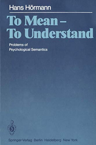 To mean-to-understand : problems of psychological semantics / Hans Hormann; translated from the German by Boguslaw A. Jankowski