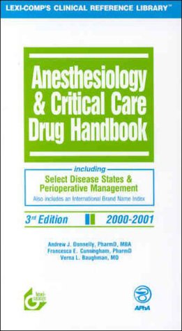 Anesthesiology & critical care drug handbook : including select disease states & perioperative management / Andrew J. Donnelly, Francesca E. Cunningham, Verna L. Baughman