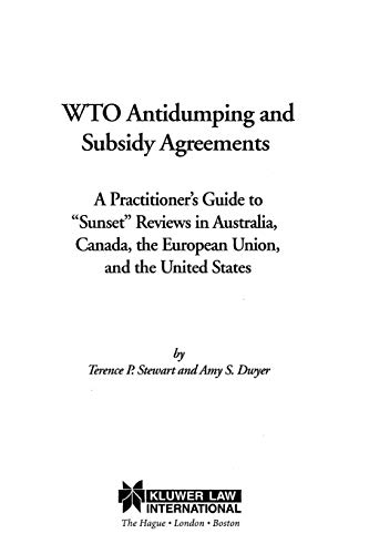 WTO antidumping and subsidy agreements : a practitioner's guide to "Sunset" reviews in Australia, Canada, the European Union, and the United States / by Terence P. Stewart and Amy S. Dwyer