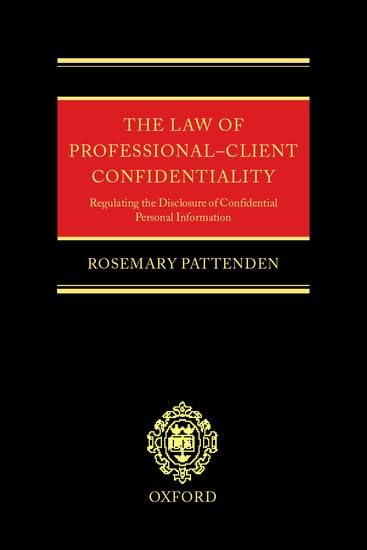 The law of professional-client confidentiality : regulating the disclosure of confidential personal information / Rosemary Pattenden